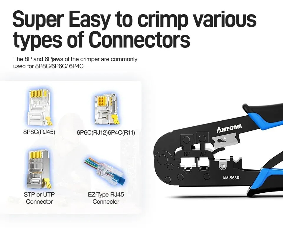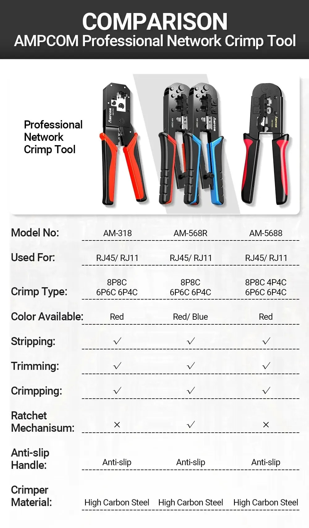 • Lý tưởng cho các chuyên gia mạng :Cho dù bạn là một người đam mê mạng chuyên nghiệp hoặc DIY, crimper ampcom này là một công cụ cần thiết cho bất kỳ nhiệm vụ mạng.