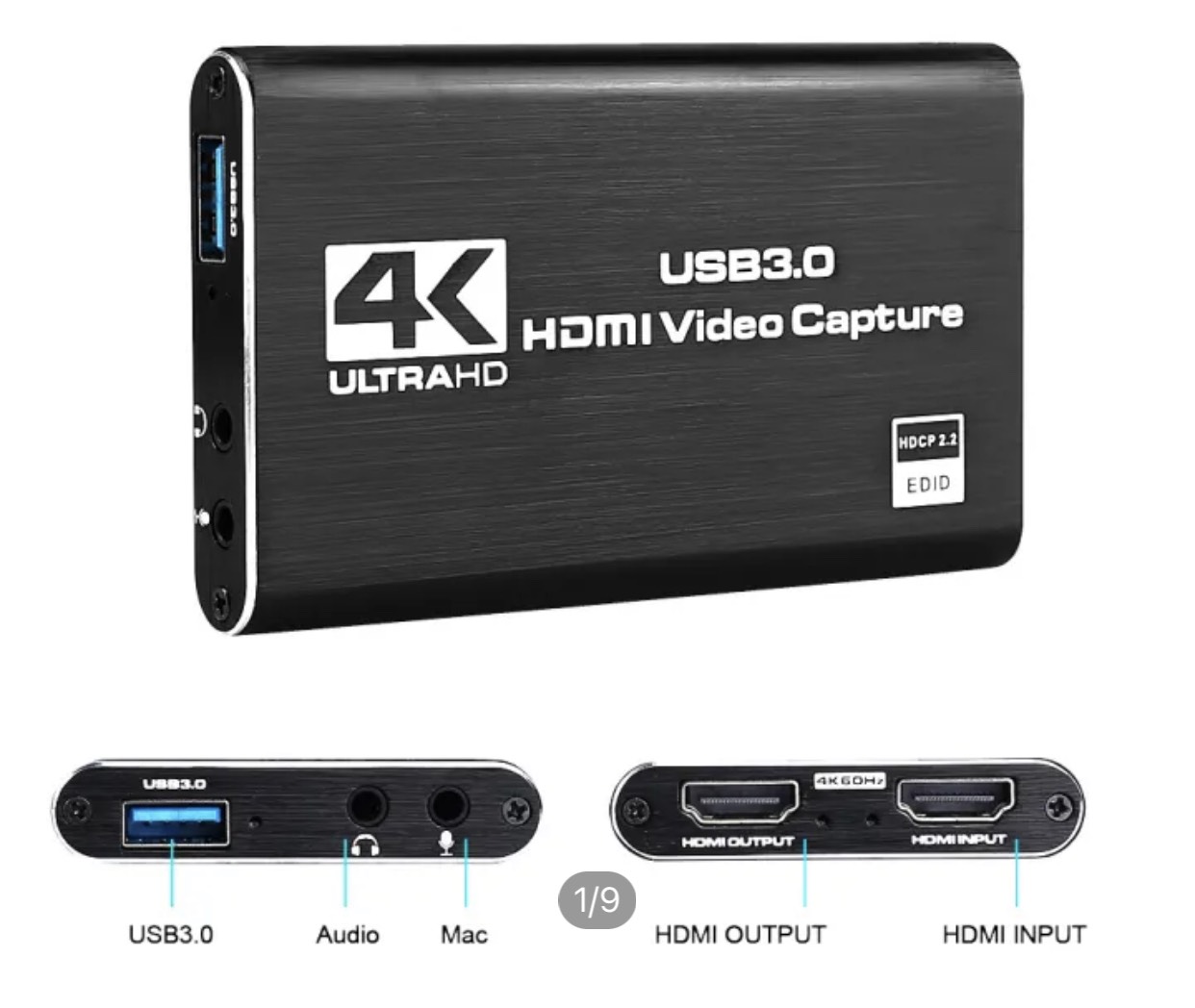 Thông số kỹ thuật: Giao diện: USB 3.0 Đầu vào Video: HDMI Âm thanh đầu vào: Kỹ thuật số: HDMI, Analog: 3.5mm micrô Đầu ra Video: HDMI Cổng ra âm thanh: HDMI 1. Yêu cầu hệ thống: Windows 7,8,10, OS x 10.9 trở lên, Linux.CPU: PC: Lõi Intel i5-3400 NVIDIA GT630 trở lên. Máy tính xách tay: Lõi Intel i7-3537U 2.0 Ghz NVIDIA GT735, MAC: i5 lõi tứ trở lên, thẻ VGA Hỗ trợ DirectX 10, card âm thanh, RAM 4GB Cổng USB 3.0 được cấp nguồn: Chipset Intel với bộ điều khiển máy chủ USB 3.0 gốc (Renesas, Fresco …) 2. Độ phân giải: 720x480 (60P), 720x576 (50P), 1280x720P (50P), 1280x720P (60P), 1920x1080 (50i), 1920x1080 (60i), 1920x1080 (24P), 1920x1080 (25P), 1920x1080 (30P), 1920x1080 (50p), 1920x1080 (60P) 3. Khả năng tương thích phần mềm: OBS Studio (Windows, OS x); Windows Media Encoder (Windows); Adobe Flash Media Live -Encoder (Windows, OS x); Real Producer Plus (Windows); vlc (Windows, os x, Linux); QuickTime broadcaster (OS x); QuickTime player (os x); wirecast (Windows, OS x); VMIX (Windows); potplayer (Windows), v. v. 4. Khả năng tương thích giao diện phát triển: Directshow (Windows), DirectSound (Windows), v4l2 (Linux), alsa (Linux) OS x (QuickTime) 5. Thiết bị chuyển tiếp: -- Bảng điều khiển trò chơi chỉ với đầu vào HDMI, chẳng hạn như Xbox One, PS4, Wii, Bộ chuyển đổi Nintendo, v. v. -- Hoạt động với máy ảnh kỹ thuật số máy quay phim, không phải GoPro hoặc camera hành trình khác.