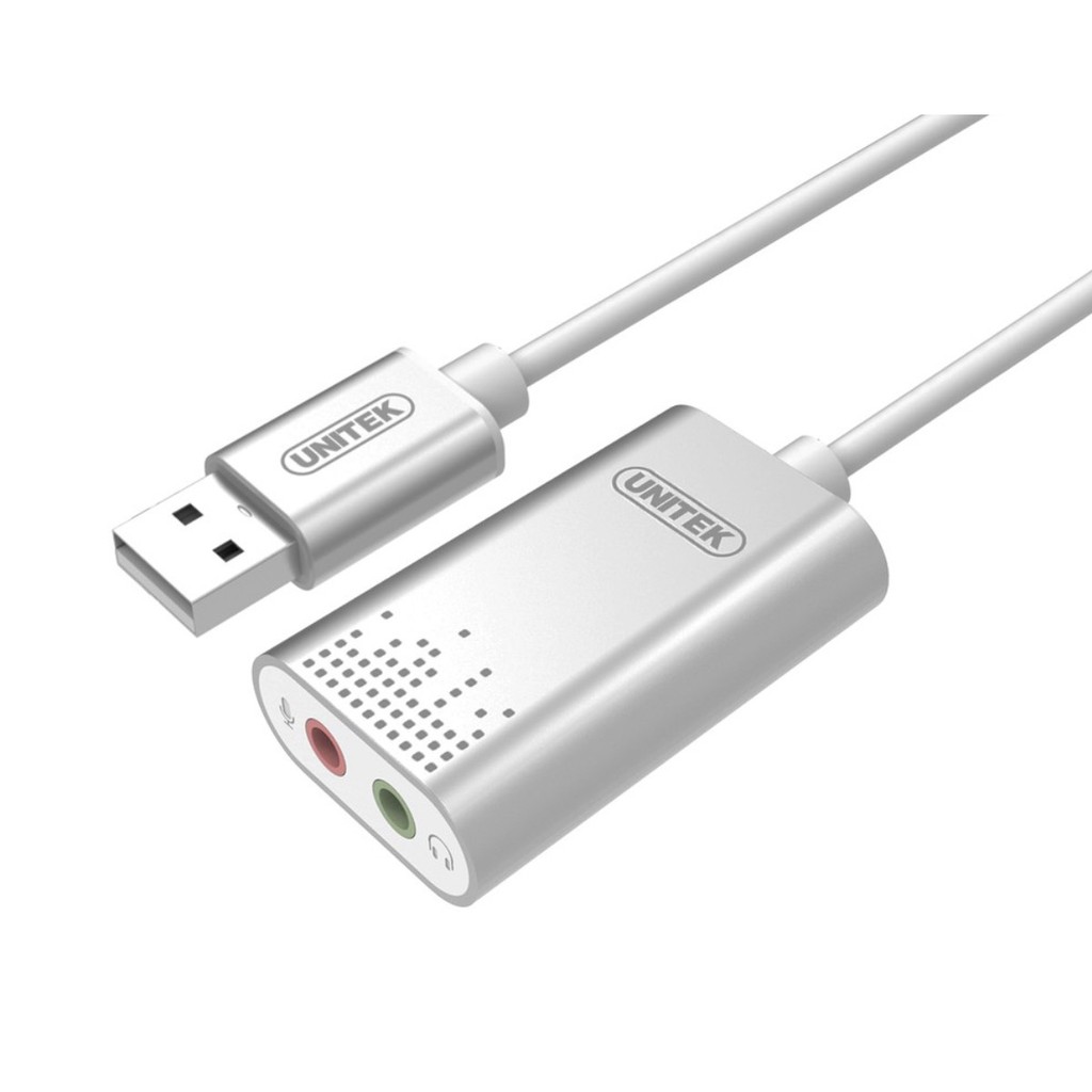 Cable USB-> Sound Unitek Y-247A hỗ trợ kết nối usb ra âm thanh. Hỗ trợ 2 cổng jack 3.5mm audio / mic. Hỗ trợ I2S / PCM / TDM. DAC hỗ trợ lên đến 192KHz 16 đầu ra / 24bit.