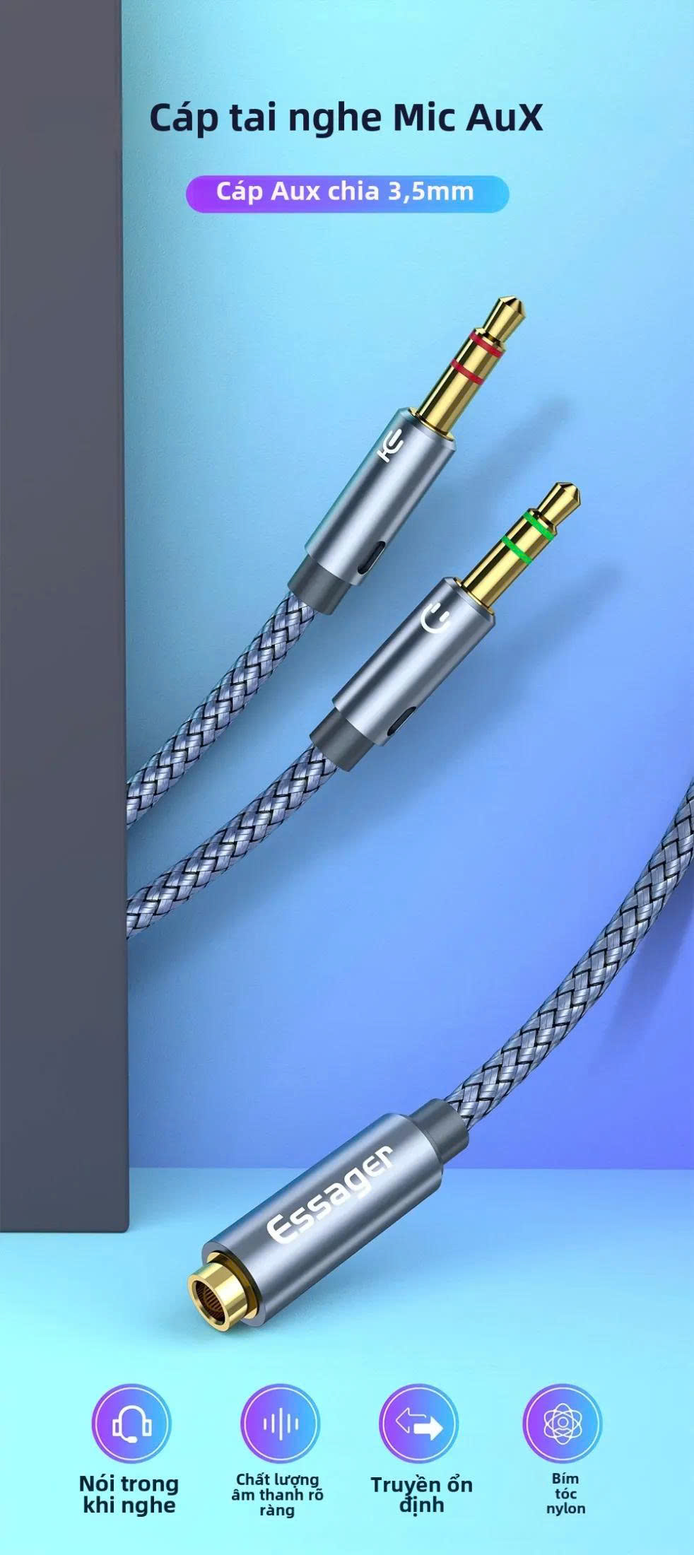 Cáp Aux ESSAGER này được thiết kế để sử dụng linh hoạt, tương thích với loa, máy tính, micrô, máy chiếu, máy nghe nhạc MP3/MP4 và máy ảnh.