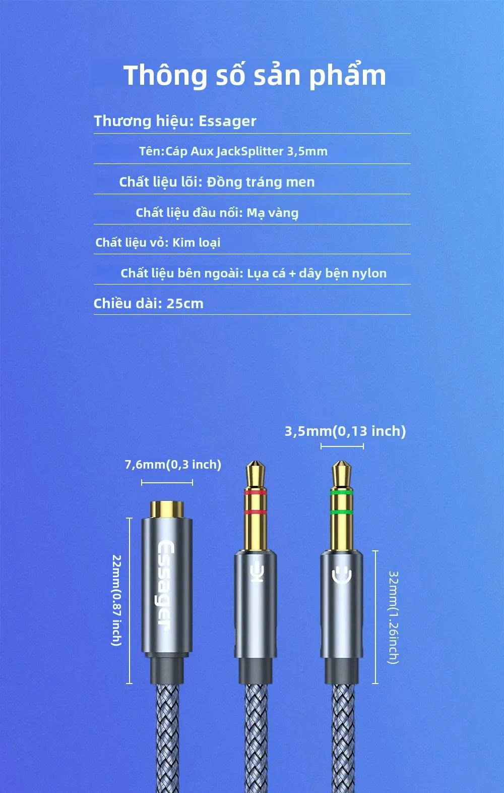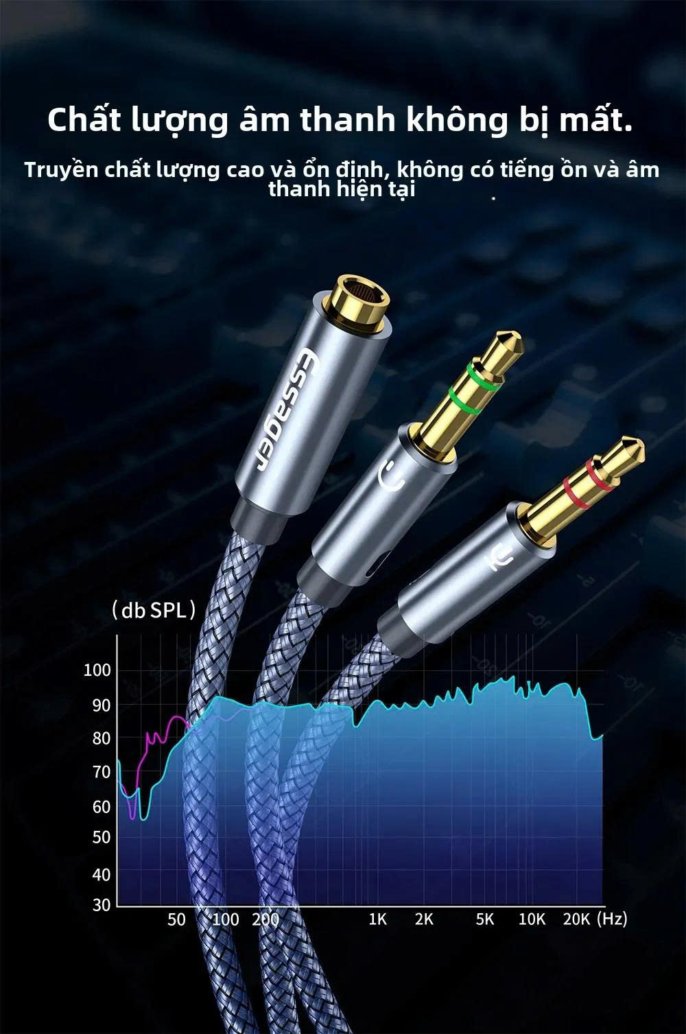 Cáp Gộp Audio 3.5mm 2 Vào 1 Ra Essager (Mic và Headphone) dùng cho máy tính bàn, laptop