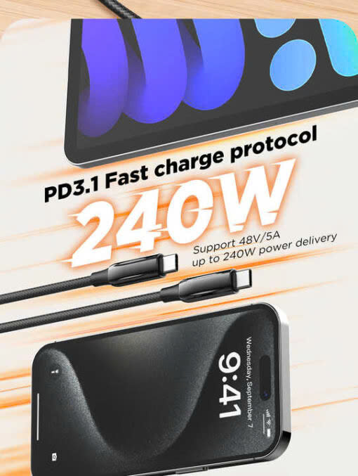 Sạc nhanh công suất cao 240W, nhận dạng thiết bị sạc một cách thông minh, có thể sạc nhanh và truyền dữ liệu cho các thiết bị như điện thoại thông minh và máy tính bảng hỗ trợ sạc nhanh.