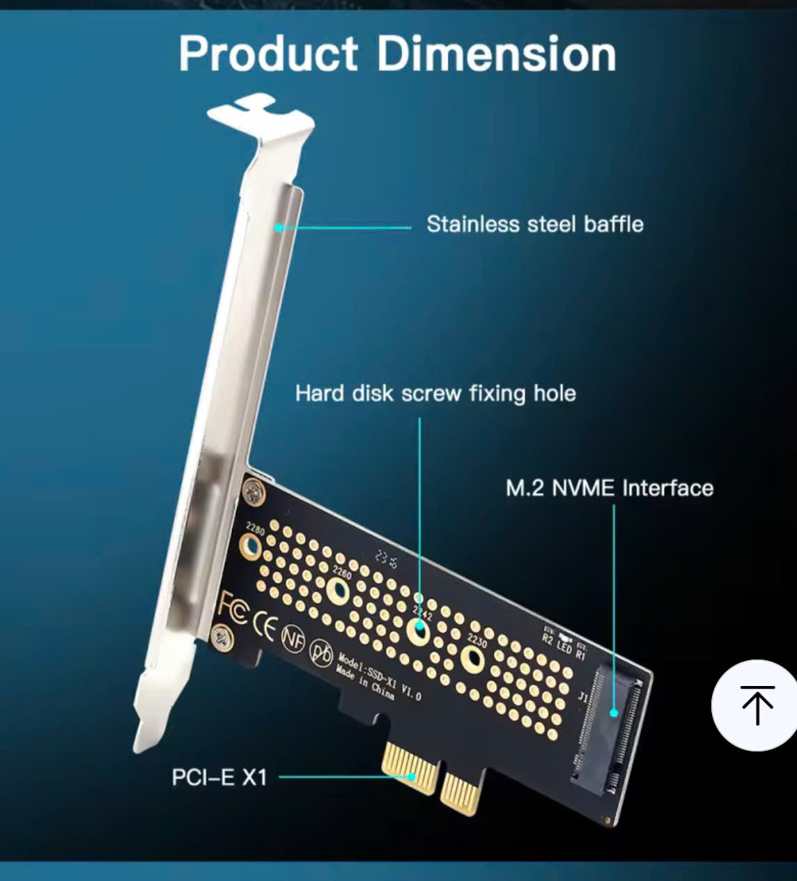 2.Thẻ chuyển đổi này chuyển đổi đĩa cứng thể rắn M.2 NGFF của giao thức giao diện PCIE X4 hoặc PCIE X2 thành giao diện PCIE X1 trên bo mạch chủ máy tính để bàn. Nó chủ yếu được sử dụng để nâng cấp chương trình cơ sở kiểm tra hàng loạt của đĩa cứng thể rắn hoặc sử dụng khẩn cấp khi một số bo mạch chủ có giao diện PCIe X4 không đủ. SSD với thẻ điều hợp này không thể chạy ở tốc độ đầy đủ! Chèn khe cắm PCIE 3.0c của bo mạch chủ càng xa càng tốt. Nếu bạn chèn khe cắm PCIE 2.0 hoặc PCIE 1.0, tốc độ rất chậm!