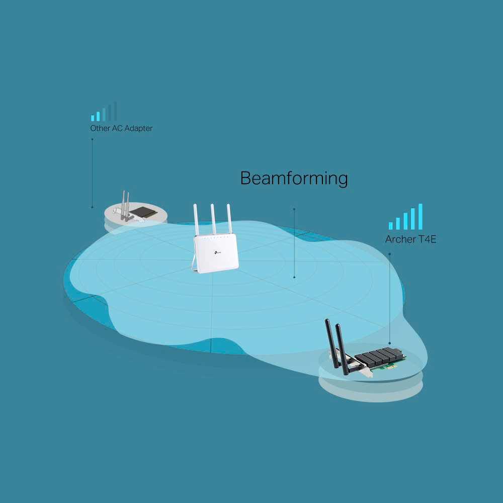 Công nghệ Beamforming tập trung thông minh tín hiệu Wi-Fi đến các thiết bị được kết nối tạo nên kết nối ổn định và vùng phủ sóng được tăng cường.