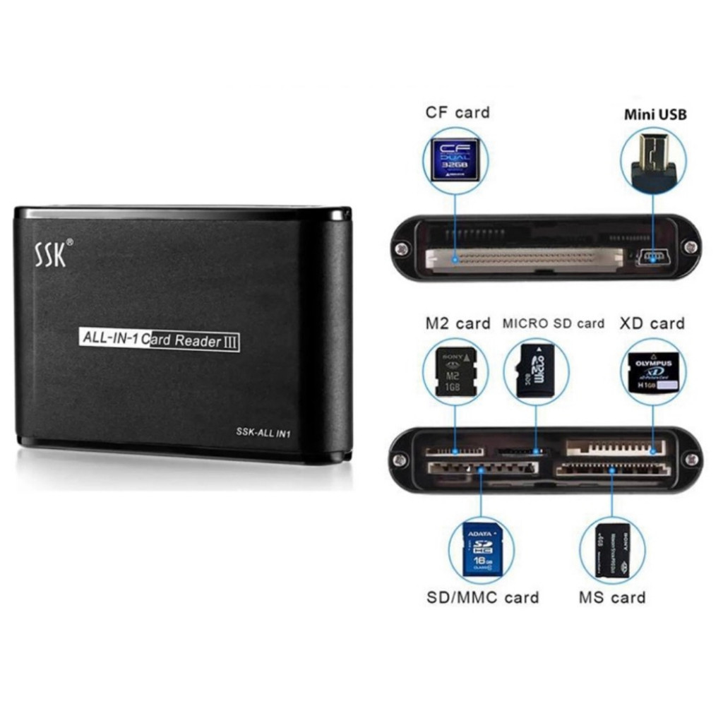 Đầu đọc thẻ nhớ tất cả trong một cho USB Mini ngoài Micro SD SDHC M2 MMC XD CF