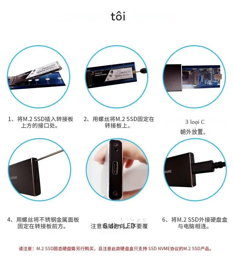 3. Kết nối NGFF B Key SSD một cách an toàn với máy tính thông qua cổng USB.