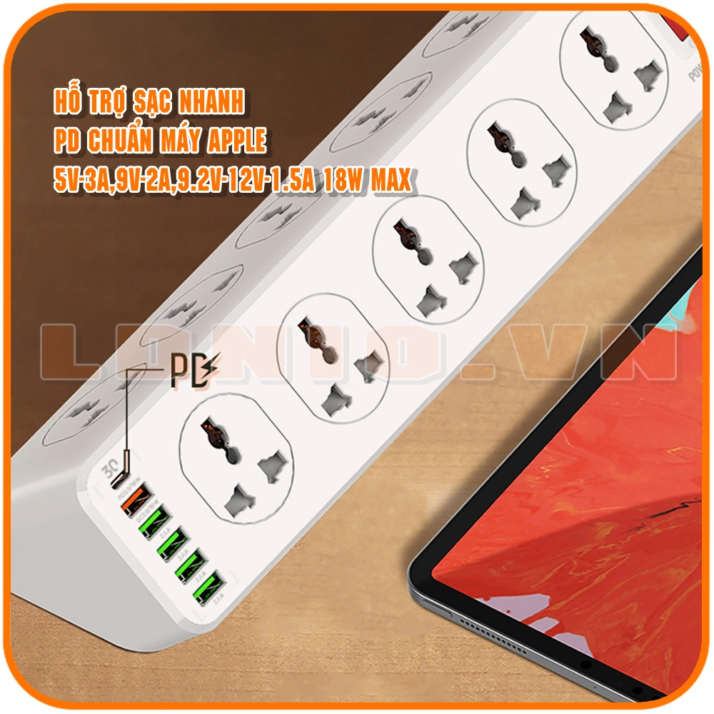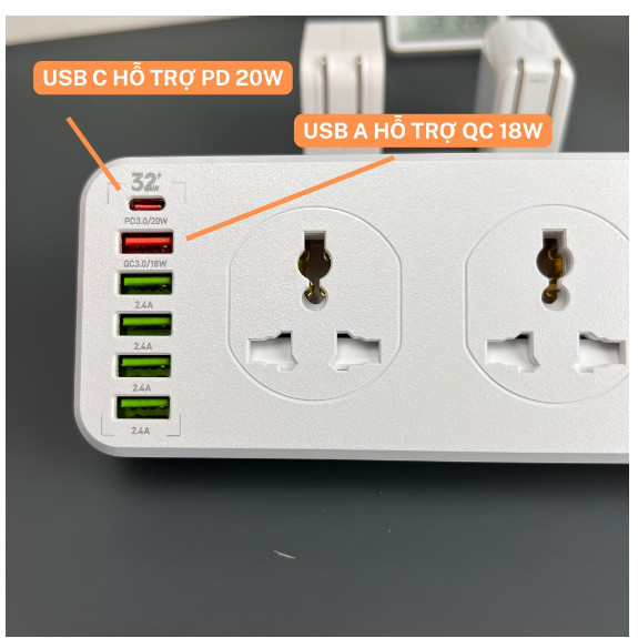10 lổ cắm + 6 USB