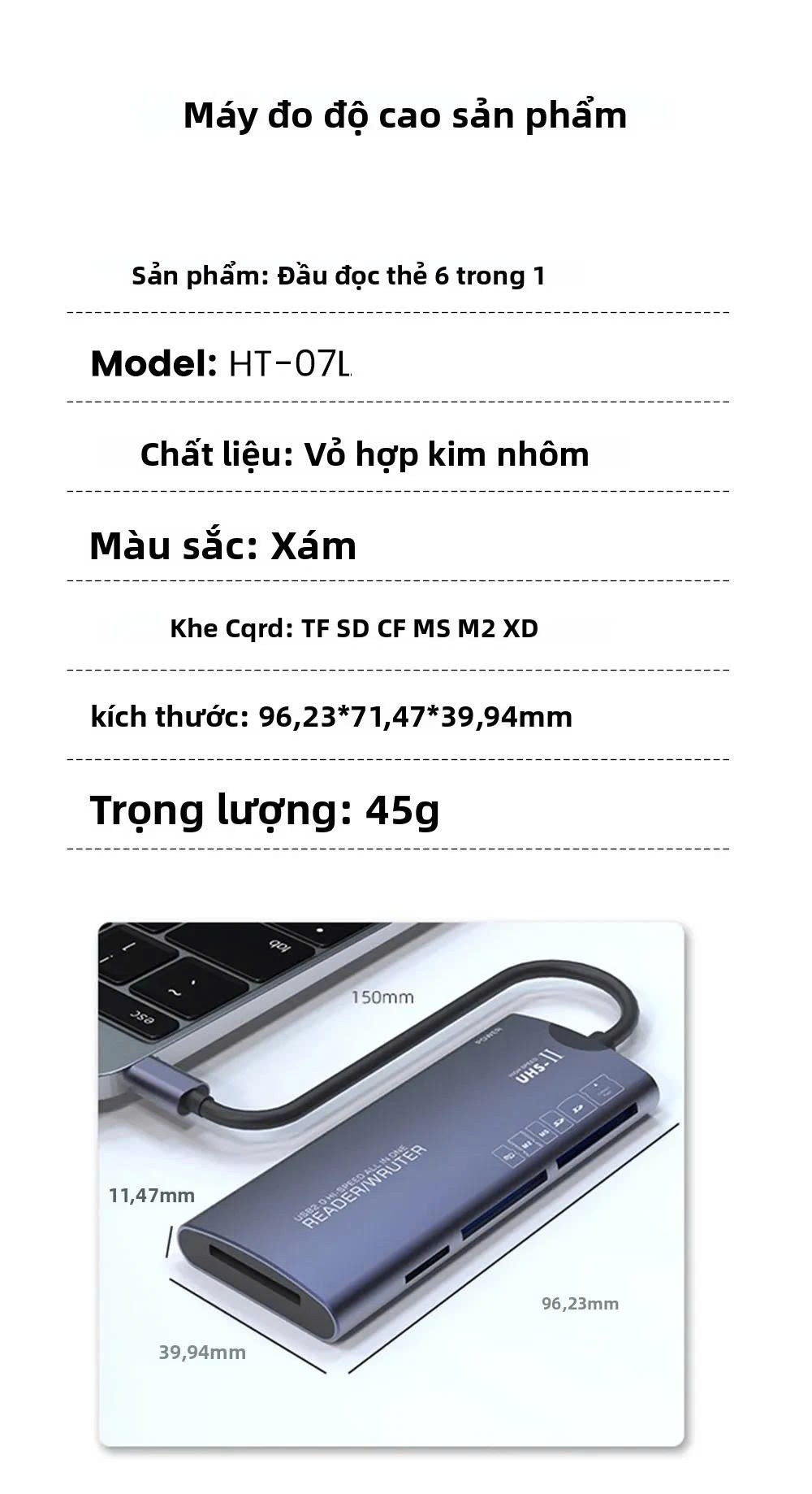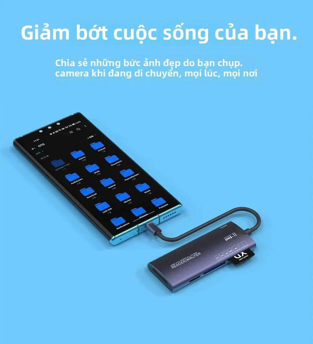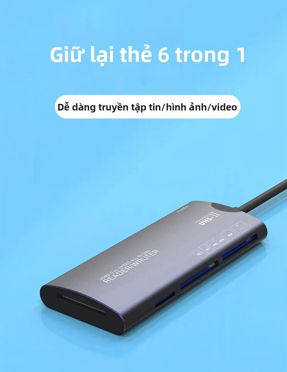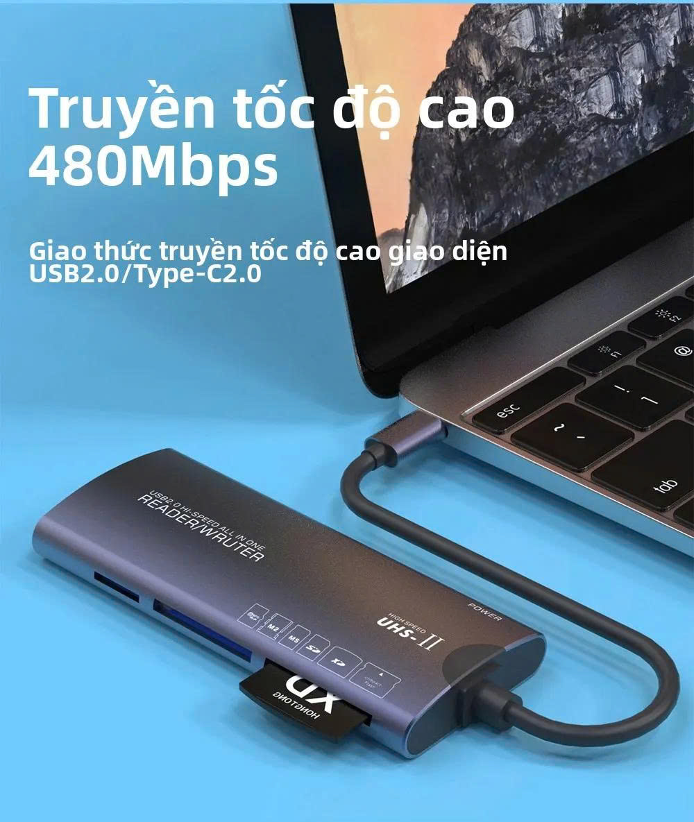 Bộ chuyển đổi 6 trong 1 hỗ trợ nhiều loại thẻ khác nhau (SD/TF/XD/CF/M2/MS), giúp nó linh hoạt cho các nhu cầu lưu trữ khác nhau.