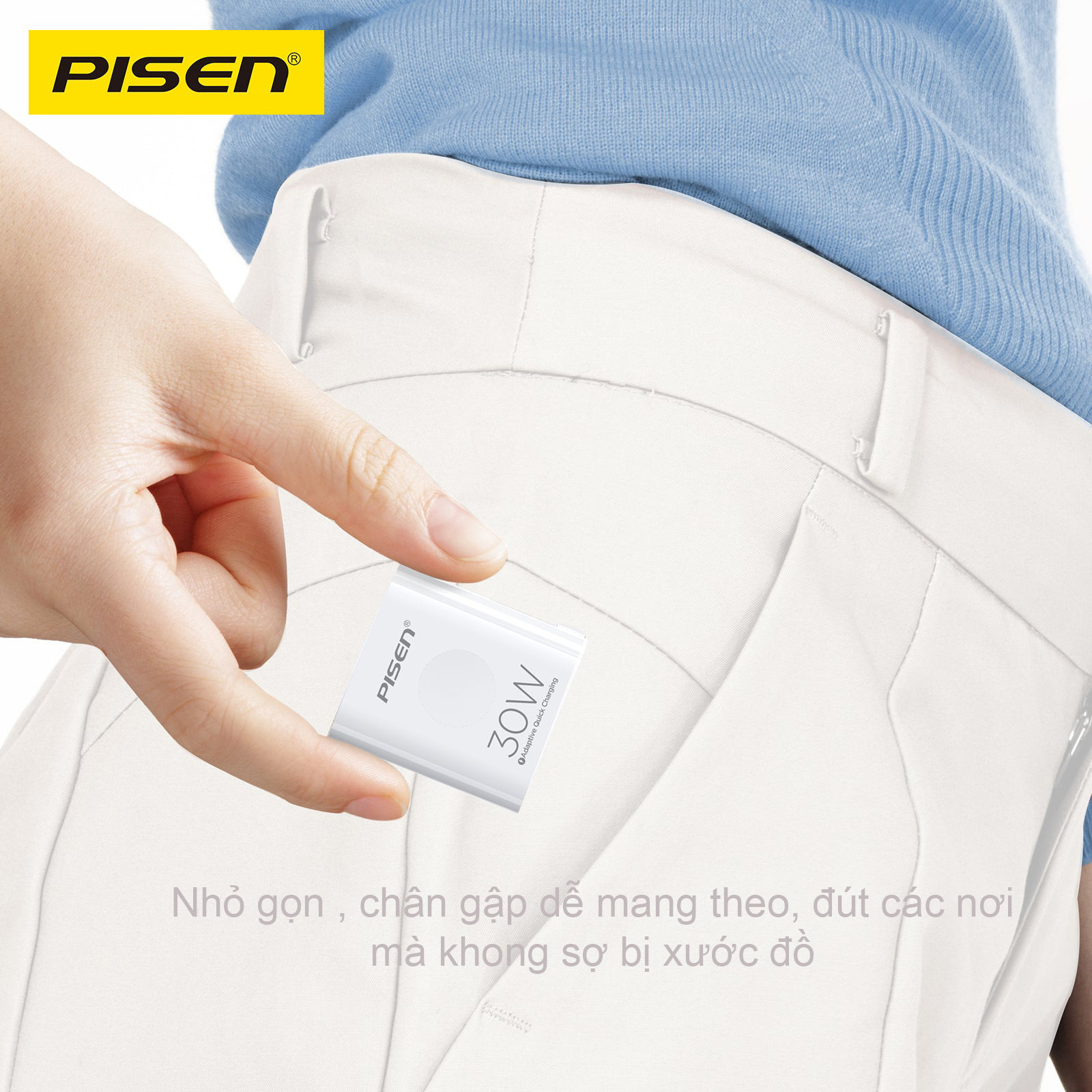 : Pisen TS C171 1C1A Điện áp vào : 100-240V 50/60hz 0.5A (Phù hợp với tất cả giải điện trên Thế giới ) Điện áp ra : Type-C: 5V-3A, 9V-2.22A, 12V-1.5A ; Công suất: 30W ; 30W USB TYPE C Charger 5V-3A 9V-2.22A 12V-1.5A PD Hỗ trợ đa giao thức sạc nhanh, sạc nhanh cho đa số điện thoại trên thị trường: QC4.0, PD3.0, AFC(Samsung), FPC (Android) Vật liệu: PC chống cháy cấp độ V0, bề mặt phủ sơn công nghệ Piano phong cách Apple bền đẹp, không bám bẩn Kích thước: 64x32x22mm Trọng lượng: 50g Cổng cắm: Type-C Type A Hỗ trợ các giao thức sạc nhanh: QC4.0, QC2.0, QC3.0, PD, PD 3.0, PD 2.0, AFC(Samsung), FPC (Android) Tích hợp bảo vệ an toàn nhiều lớp: Short Circuit Protection, ovp, OTP, OLP, ocp, Overcurrent,.... Lưu ý: Các máy thiện thoai cũ bạn vẫn có thể dùng củ sạc này sạc nhanh hơn sạc gốc theo máy mà không phải lo lắng hại máy Sử dụng cáp Dual Type-C 3A-5A..để sạc nhanh cho Samsung và các điện thoại Android hỗ trợ sạc nhanh Sử dụng cáp Lightning Fast có dòng 2A trở lên để sạc nhanh hơn ũ Sản phẩm không kèm cáp sạc nhanh Bộ sản phẩm gồm có: 1 × Sạc PISEN Quick PD 30W 1 × Sách hướng dẫn
