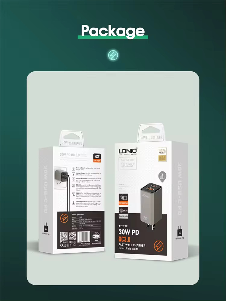 Đầu ra 9 V/2A, 5 V/3A, 9V/3A, 12V/2,5A, 15V/2A, 20V/1,5a