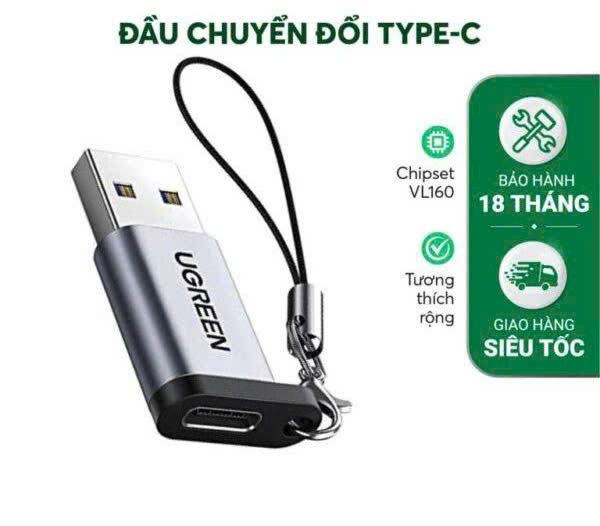 - Đầu chuyển đổi USB 3.0 Type C Ugreen 50533 chính hãng sử dụng cho điện thoại, máy tính bảng, Macbook 12 inch, Google ChromeBook Pixel... với tốc độ truyền dữ liệu lên đến 5Gbps.