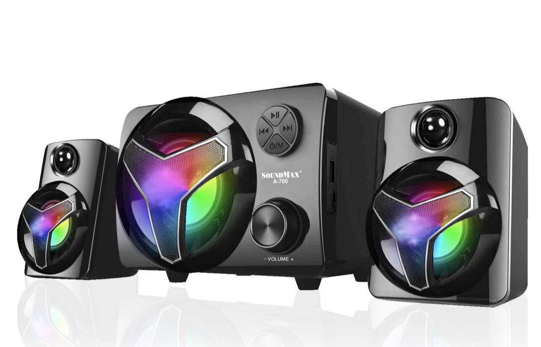 Hệ thống loa 2.1 kênh, thùng loa màu đen