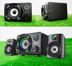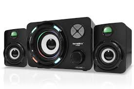 Hệ thống loa 2.1 kênh, thùng loa màu đen