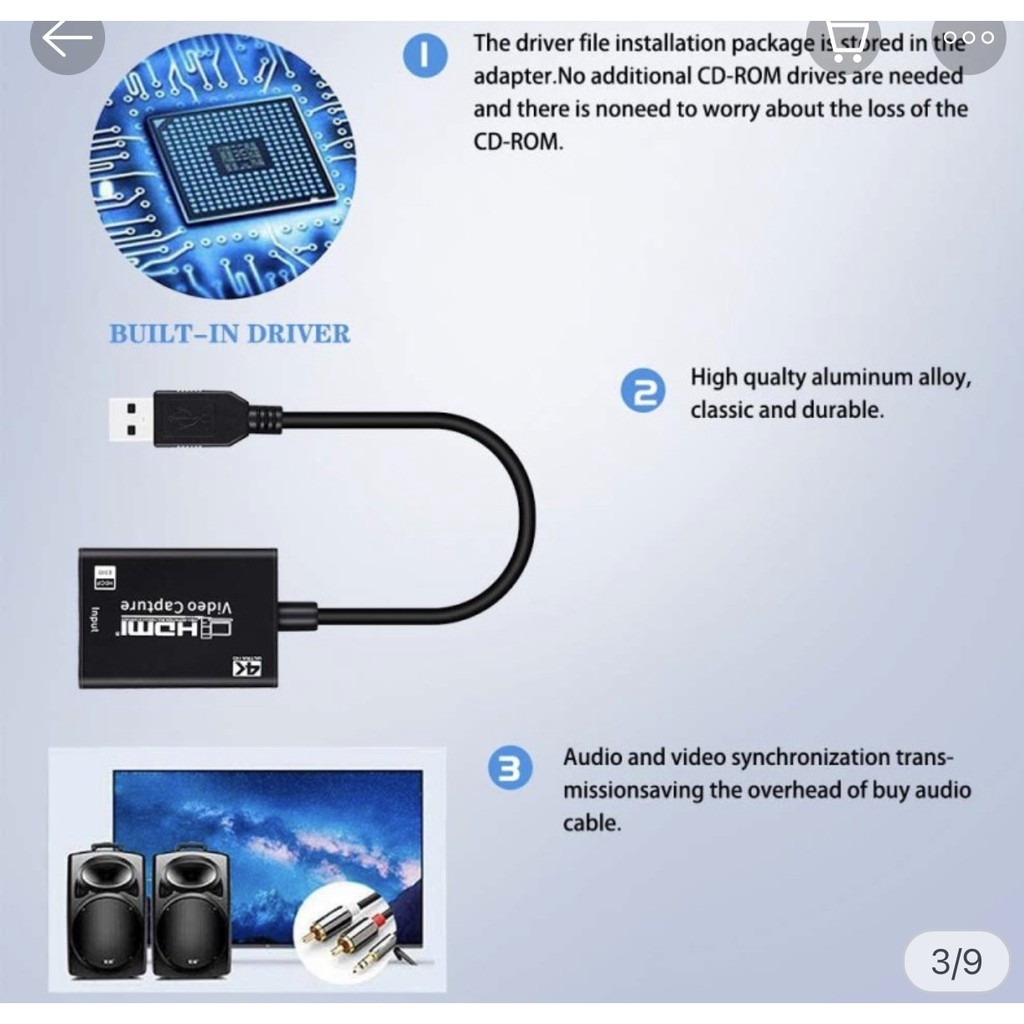 Quay video có thể thu cả video HDMI và âm thanh HDMI, gửi tín hiệu âm thanh và video đến máy tính và điện thoại thông minh để xem trước và lưu trữ. Thích hợp để thu thập độ nét cao, ghi lại giáo dục, hình ảnh y tế, v.v.