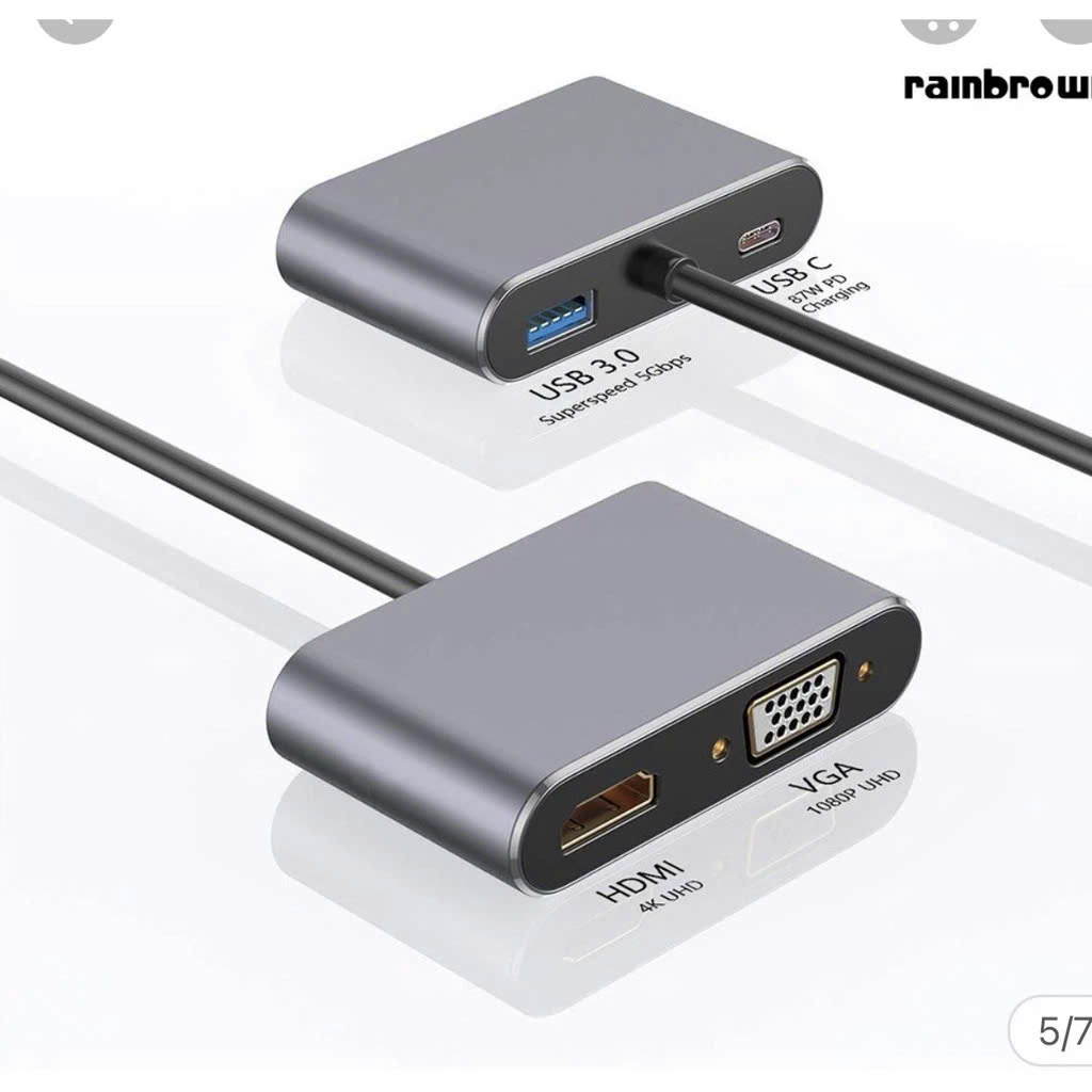Loại: Type-c sang HDMI + VGA + USB3.0 + PD3.0