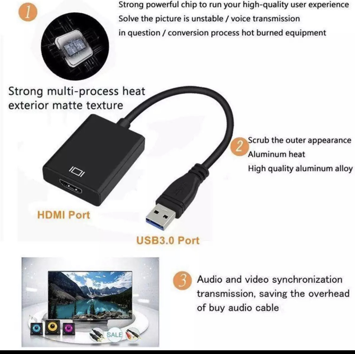 Gói hàng bao gồm: 1 x Dây cáp chuyển đổi USB sang HDMI