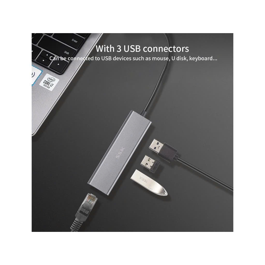 👉SSK Cáp chuyển USB 3.0 2.0 sang mạng Lan RJ 45+ Bộ chia USB SSK C562 C561 dài 20 cm màu xám tuỳ chọn
