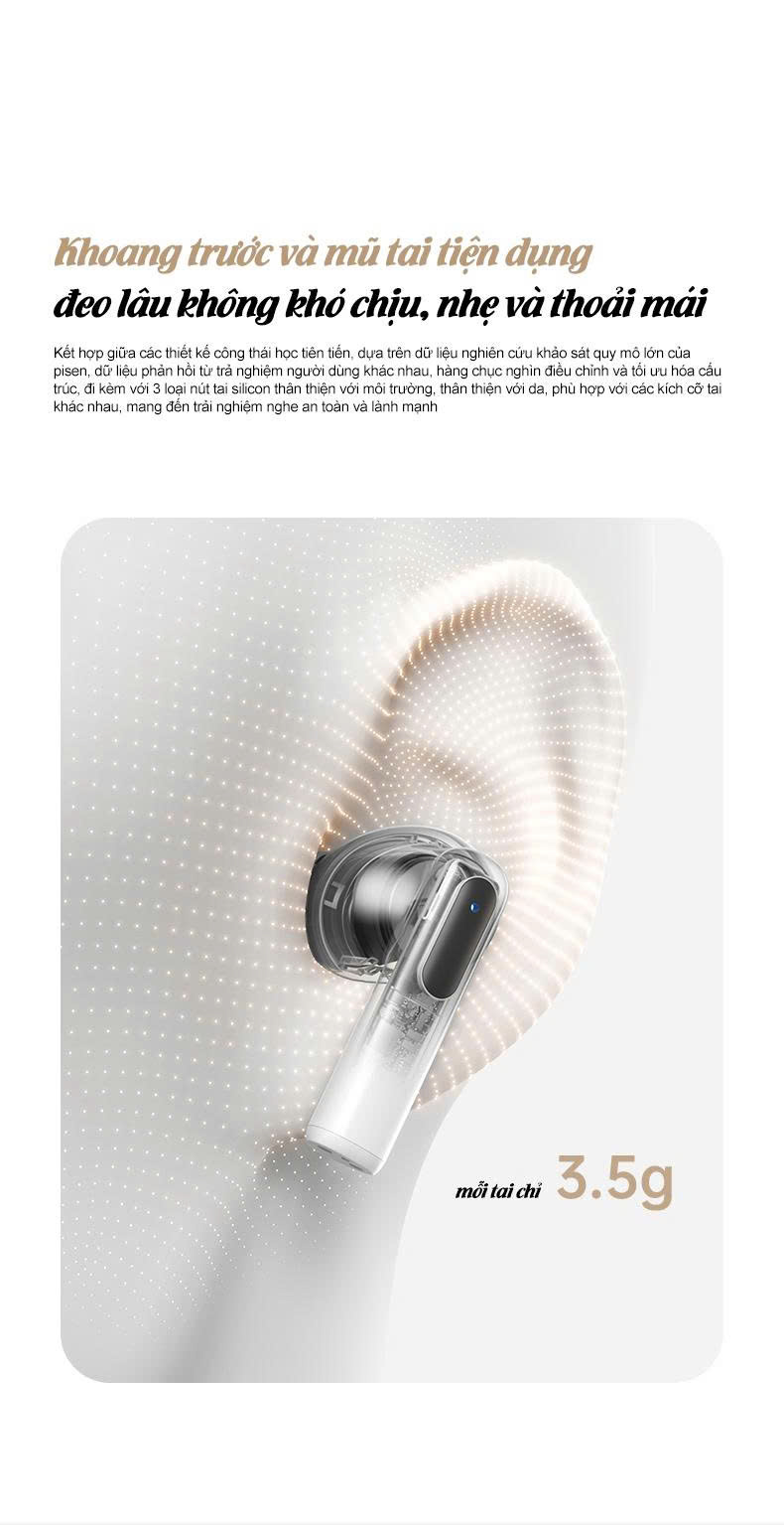Đáng chú ý, chất âm của Pisen BHD-TW13 được tinh chỉnh bởi chuyên gia âm thanh Axel Grell – người từng làm nên danh tiếng cho nhiều thương hiệu tai nghe cao cấp. Nhờ đó, sản phẩm sở hữu âm trường rộng, âm bass sâu, âm mid rõ ràng và âm treble sắc nét, phù hợp cho cả việc thưởng thức nhạc, xem phim hay họp trực tuyến.