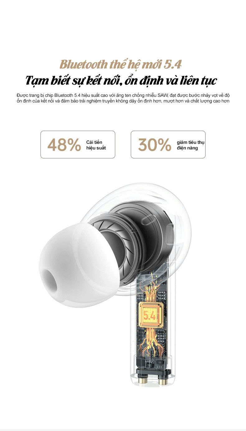 Tai nghe Pisen BHD-TW13 được trang bị Bluetooth 5.4 – thế hệ kết nối không dây mới nhất, giúp cải thiện tốc độ truyền dữ liệu, giảm độ trễ đáng kể và tăng khả năng tiết kiệm pin. Nhờ đó, dù bạn đang xem phim, chơi game hay đàm thoại, kết nối luôn ổn định, âm thanh mượt mà và không gián đoạn.