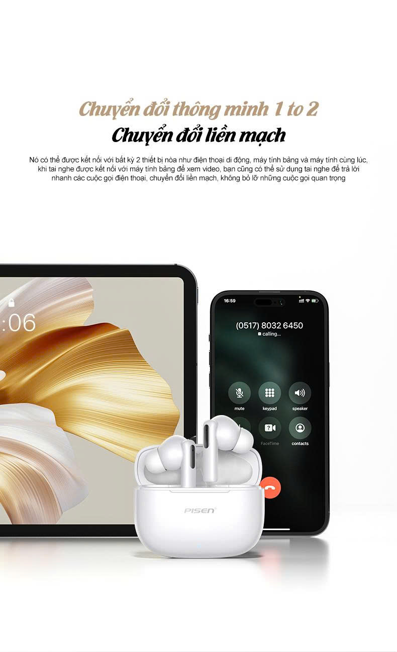 Giữa hàng trăm lựa chọn tai nghe không dây trên thị trường hiện nay, việc tìm được một sản phẩm tai nghe vừa có thiết kế tinh tế, âm thanh chất lượng, vừa tích hợp công nghệ tiên tiến là điều không hề dễ. Hiểu được điều đó, Tai nghe Bluetooth Pisen BHD-TW13 (Chống ồn kép ANC + ENC) ra đời như một phụ toàn diện – hội tụ sự tinh tế về thiết kế, sự mạnh mẽ về hiệu năng và tính linh hoạt cao trong sử dụng, giúp người dùng tận hưởng thế giới âm thanh theo cách riêng biệt và hoàn toàn đắm chìm.