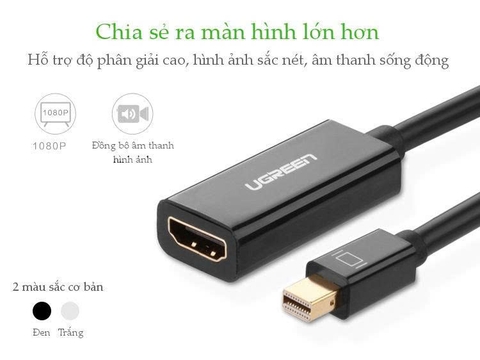 là một phụ kiện điện tử chất lượng cao, giúp kết nối các thiết bị có cổng Mini DisplayPort, như MacBook, laptop Windows hoặc các thiết bị khác, với màn hình, TV hoặc máy chiếu sử dụng cổng HDMI. Dưới đây là những thông tin chi tiết về sản phẩm này: - Chuyển đổi tín hiệu Mini DisplayPort sang HDMI: Cáp Ugreen 40360 cho phép bạn chuyển đổi tín hiệu video và âm thanh từ Mini DisplayPort (hoặc Thunderbolt) sang HDMI, giúp kết nối máy tính với màn hình, TV hoặc máy chiếu.